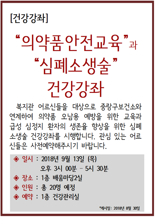[건강관리실] "의약품 안전교육과 심폐소생술" 건강강좌