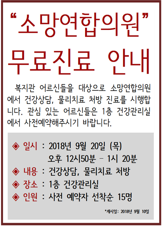 [건강관리실] 소망연합의원 무료진료 안내