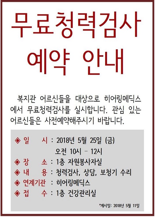 [건강관리실] 히어링메딕스 무료청력검사 안내