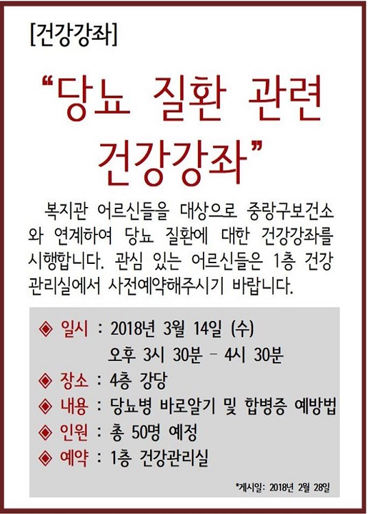 [건강관리실] 당뇨 질환 관련 건강강좌