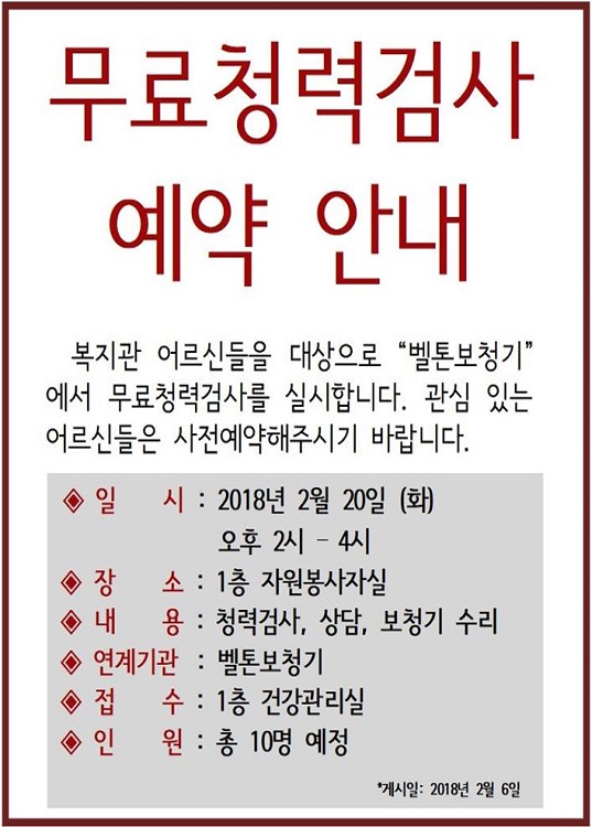 [건강관리실] 벨톤보청기 무료청력검사 안내
