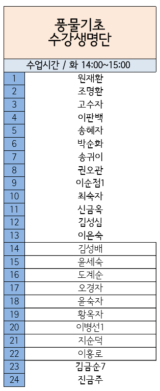 [평생교육] 2018년도 상반기 평생교육 수강생명단(풍물기초, 풍물중급, 꽹과리, 가락장구기초, 가락장구심화)