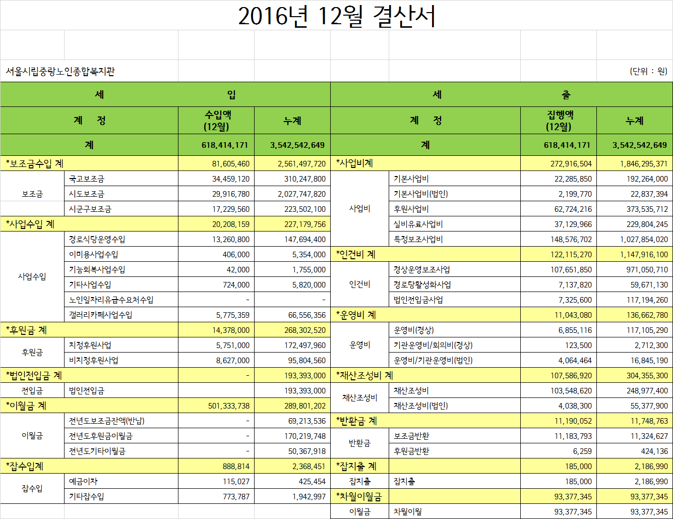 2016년 12월 결산서(복지관) 박은정 0 263 2017.01.09 14:23 2024.07.17 06:27 2016.12월 결산서(복지관)-공개용.xlsx (19.8K) + 0