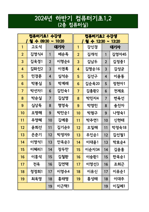 [평생교육] 2024년 하반기 평생교육 합격자 발표(정보화교육)