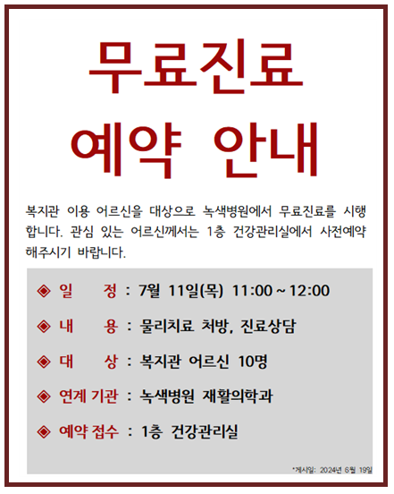 [건강관리실] 녹색병원 무료진료 예약 안내
