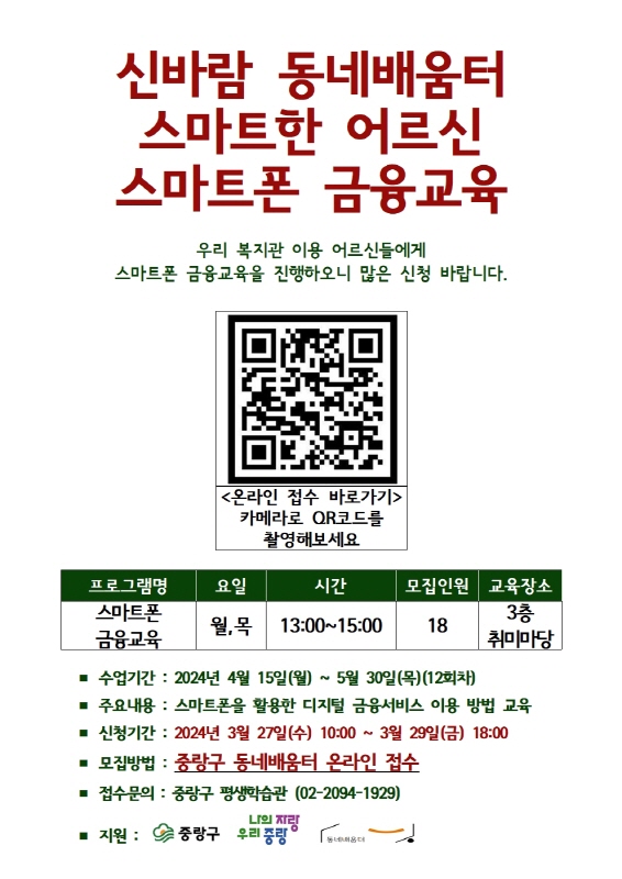[평생교육] 신바람동네배움터 스마트폰 금융교육 참여자 모집