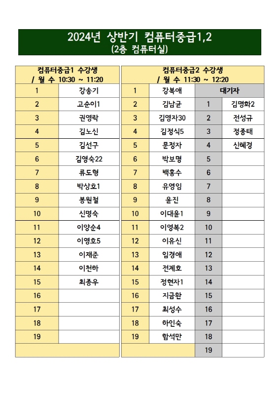 [평생교육] 2024년도 상반기 평생교육(컴퓨터)최종 합격발표