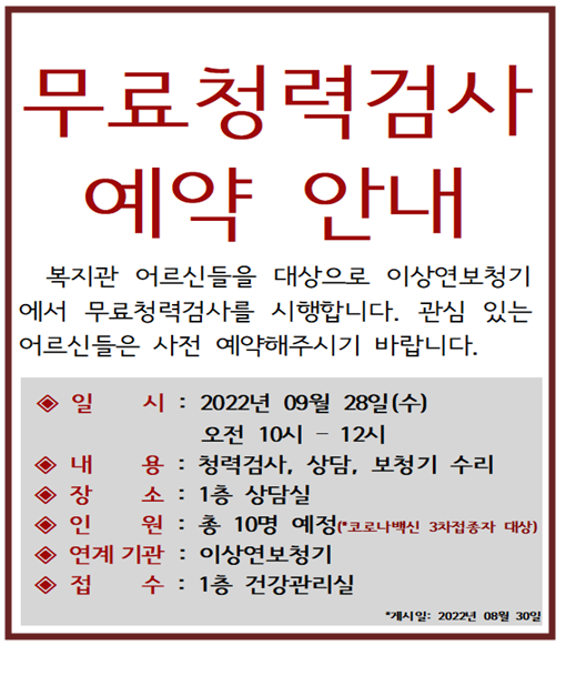 [건강관리실] 이상연보청기 무료청력검사 예약 안내