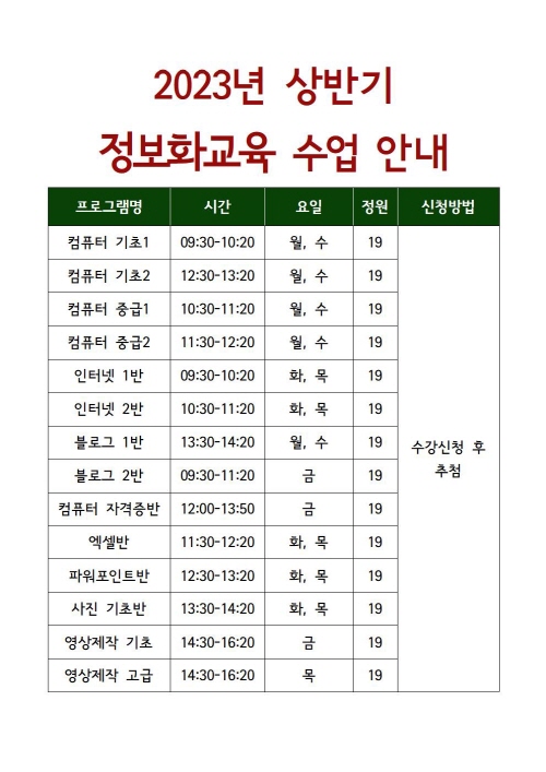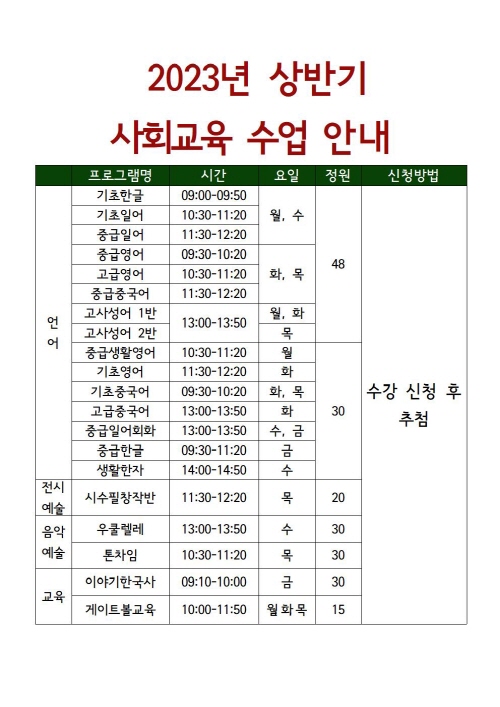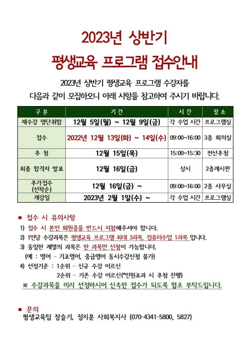 [평생교육] 2023년 평생교육 상반기 접수 일정 안내