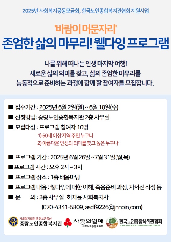 [시니어종합상담사업] 사회복지공동모금회, 한국노인종합복지관협회 지원사업 웰다잉프로그램 '바람이 머문 자리' 2기 참여자 모집