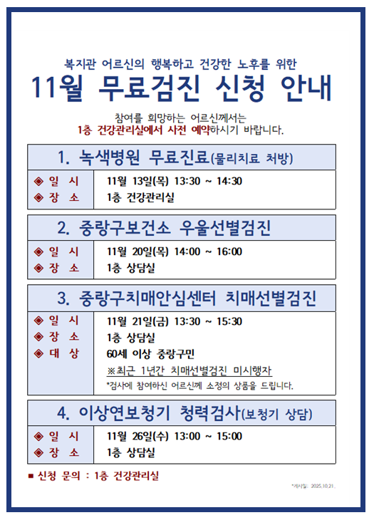 [건강관리실] 11월 무료검진 신청 안내