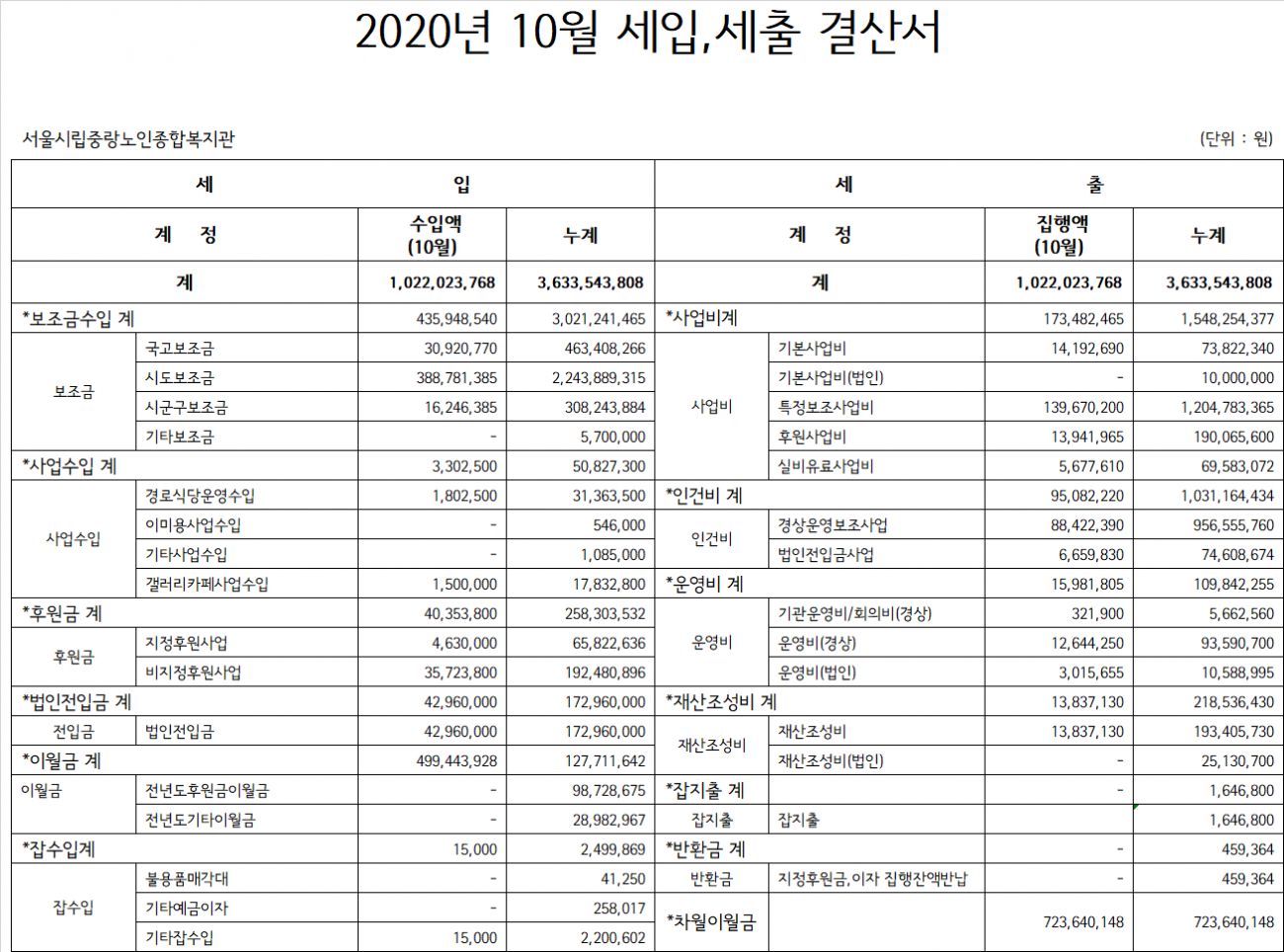 2020년 10월 세입세출 결산보고(복지관) 박은정 0 247 2020.11.06 11:41 2024.07.17 06:27 2020.10월 결산서(복지관)-공개용.xlsx (76.4K) + 0