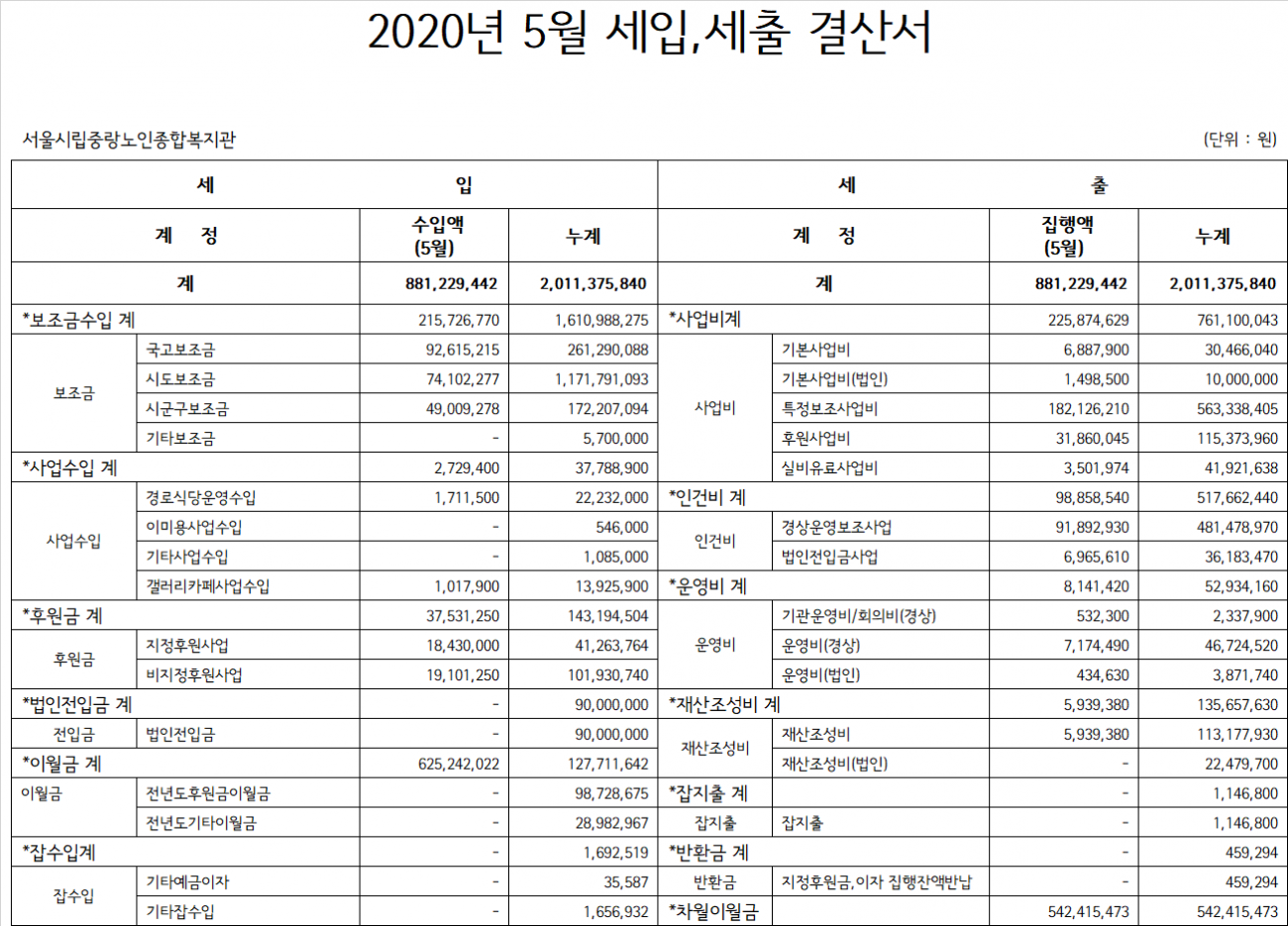2020년 5월 세입세출 결산보고(복지관) 박은정 0 226 2020.06.04 11:43 2024.07.17 06:27 2020.5월 결산서(복지관)-공개용.xlsx (45.1K) + 0