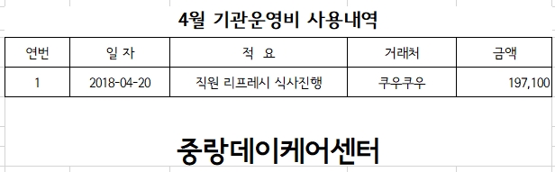 2018회계년도 추경(1차) 예산공고 (데이케어)