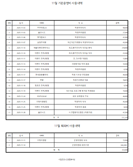 2025년 11월 업무추진비 보고(복지관)