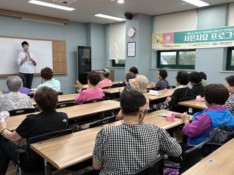 [복지관] 사은사요 온마음피움 자조모임 진행 최고관리자 0 226 09.03 11:47 9월 3일(수), 복지관에서는 사은사요 온마음피움 자조모임을 진행하였습니다.이번 모임은 ‘환경·정리 실천’을 주제로,의류 나눔 캠페인(21%) 준비와 관련된 다양한 의견을 나누는 시간이었습니다.앞으로 어르신들과 함께 만들어갈 사은사요 실천 캠페인이 더욱 기대됩니다.○ 일시: 2025. 9. 3.(수) ○ 장소: 중랑노인종합복지관 ○ 내용: 사은사요 자조모임 – 환경·정리 실천 논의 및 캠페인 준비 ○ ESG 영역: S(지역사회 연계 교육 참여)○ 문의: 장슬기 사회복지사 (02-493-3761)