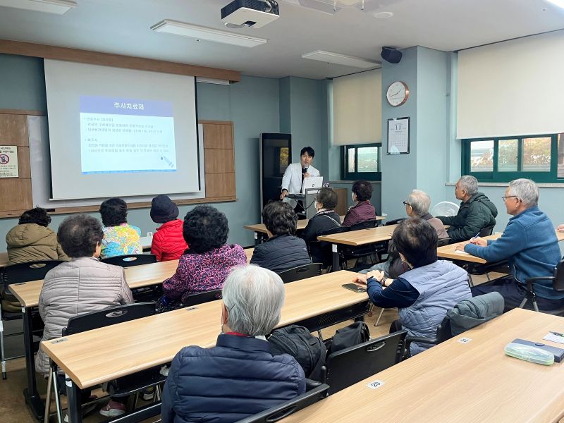복지관 어르신을 대상으로 퇴행성관절염의 정의, 증상, 치료 및 관리방법 등 상세한 강의가 이루어졌습니다.