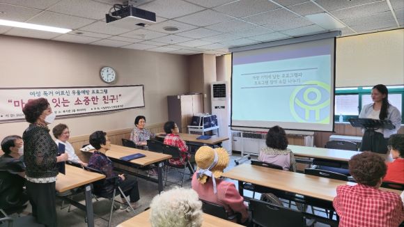 마음을 잇는 소중한 친구는 여성 독거 어르신을 대상으로 하는 우울 예방 프로그램입니다.
