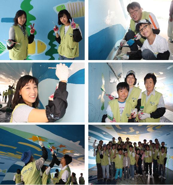 하늘, 강, 바다라는 소재로 물고기와 구름, 달 , 별 등이 어우러진 한폭의 그림으로 중랑천 연결통로의 벽이 확 바뀌었답니다.