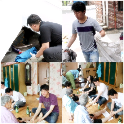 학수 경로당을 방문하여 환경개선 한팀과 발맛사지한팀으로