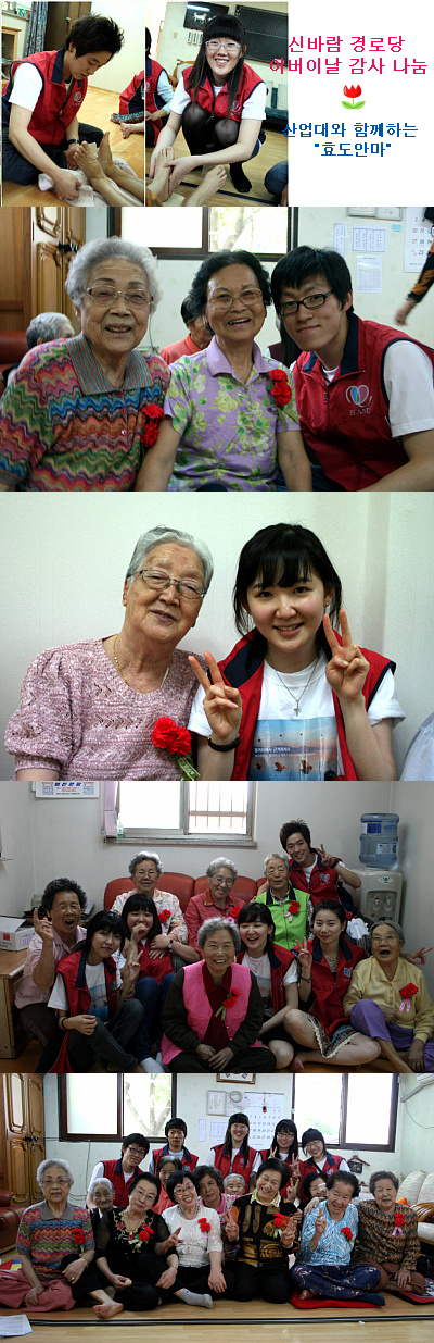 서울산업대 자원봉사자 학생들의 마음이 담긴 효도마사지에 감동하시며 행복해하셨습니다.