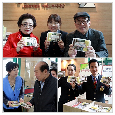 어르신들의 사랑에 감사하는 마음으로 오늘 참사리터 앞에서 기념떡 나눔 행사가 있었습니다.