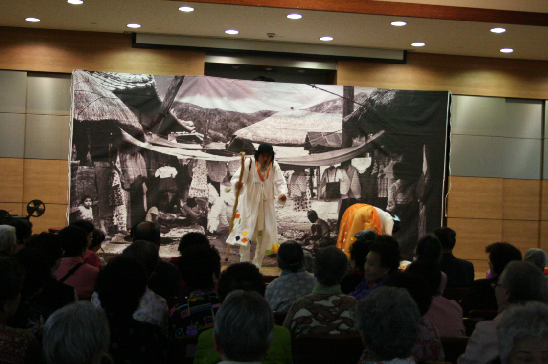 문화공연 '장날' 정의만 0 451 2009.03.23 11:13 2009년 3월 20일 약간은 우스꽝 스러운 복장이지만 밝은 모습으로 복지관을 찾아와 주신 손님이 있습니다. 문화공연을 위해 찾아주신 공연팀인데요 북과 징을 치는 모습이 예전 장터의 장사꾼과 매우 흡사해 보였습니다. 어르신들의 젊은 시절 장터를 그린 공연은 어르신들의 마음이 그 시절로 되돌아 간듯 즐거웠하셨습니다. 공연을 진행하여준 공연진행팀에게 다시 한번 감사드립니다.