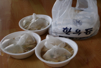 뜨끈뜨끈 우동과 한국인의 대표음식 김밥을 드시며
