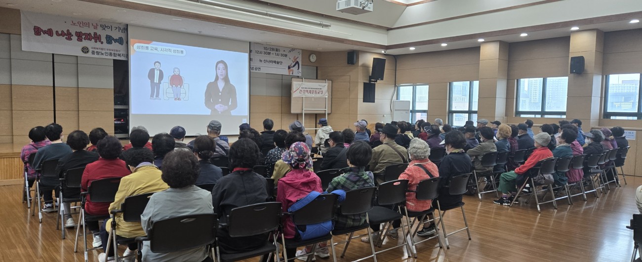 노노강사·노노케어 참여자 어르신을 대상으로 성희롱 예방 교육을 진행하며,