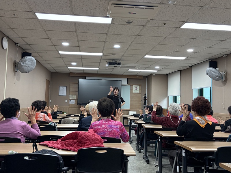 어르신들은 익숙한 멜로디에 맞춰 리듬악기를 두드리고 손가락 스트레칭을 해보며 긴장을 풀고, 음악이 주는 편안함 속에서 정서적 안정과 긍정적인 에너지를 느끼는 시간을 가졌습니다.